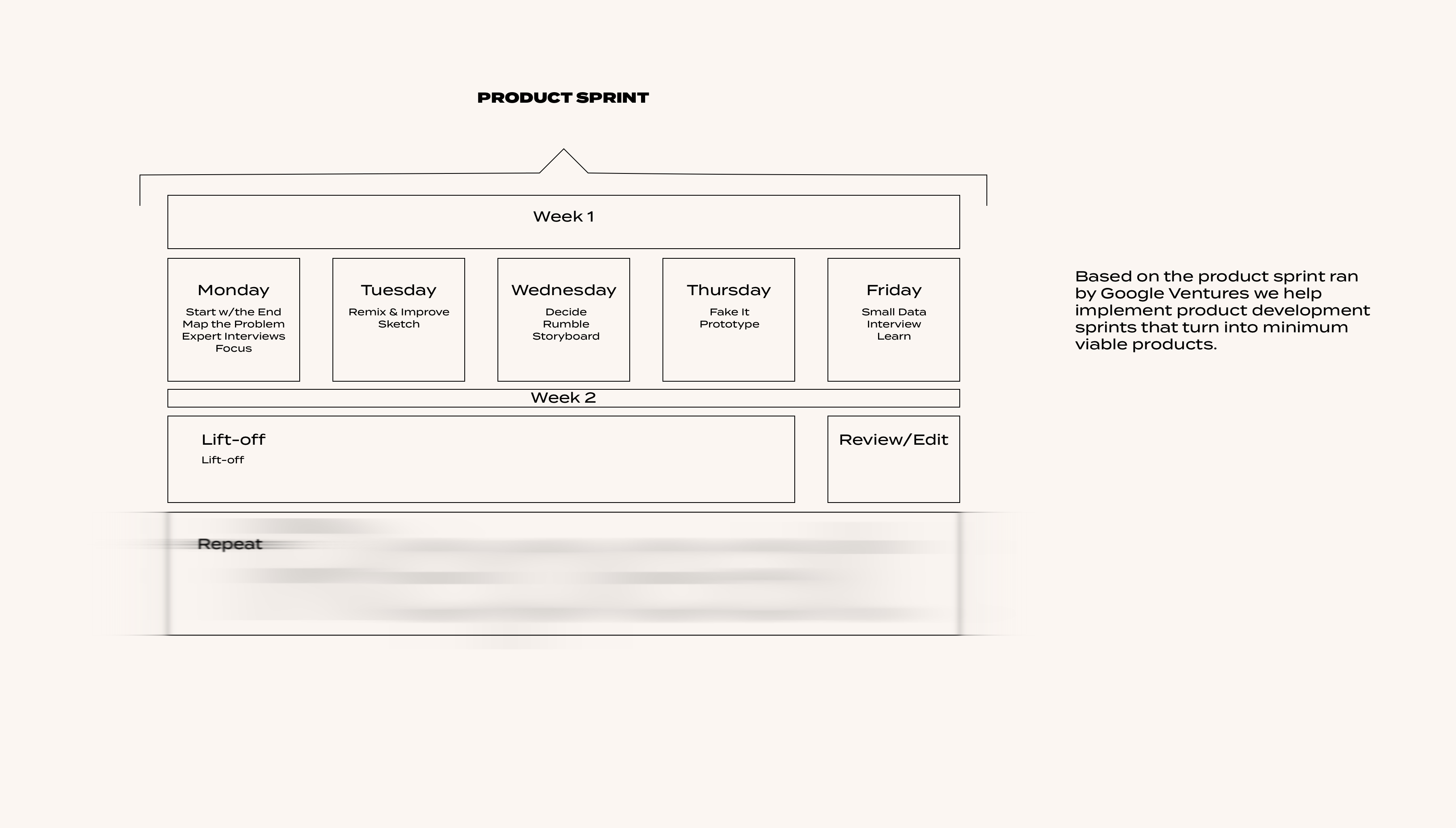 Start with end in mind. The business of innovation is anyone's game. We help businesses uncover their north star when it comes to product innovation and facilitate workshops and sprints that generate a direction for product creation.